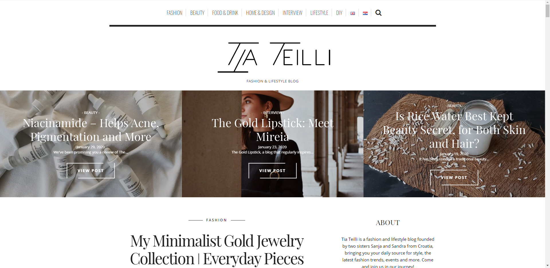 This project we did for Tia Teilli, a fashion and lifestyle blog, is set around a pre-made theme, but it took a lot of html and css editing to achieve its final look.